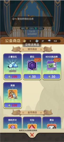 日常补给:黄金挑战卷、黑钻必买,后期钻石多了加上英雄卷、boss挑战卷、箭石