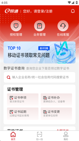 2、进入app就可以进行证书管理和查询,还有很多相关业务;