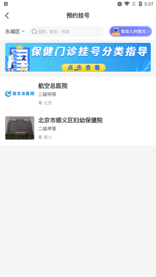 4、选择所在区域的医院点击进入,如北京市顺义区妇幼保健院;