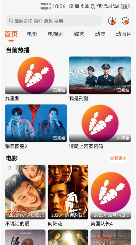 萝卜影视app官方版是一款多功能影视观影软件。打开app,首页全是新鲜热乎的热门电影和剧集,想看什么搜一搜,智能搜索秒出结果,找剧比点外卖还快。播放技术超稳,就算网络偶尔掉链子,也能继续流畅看,完全不卡顿,新手也能秒上手,完全不用愁找不到想看的。