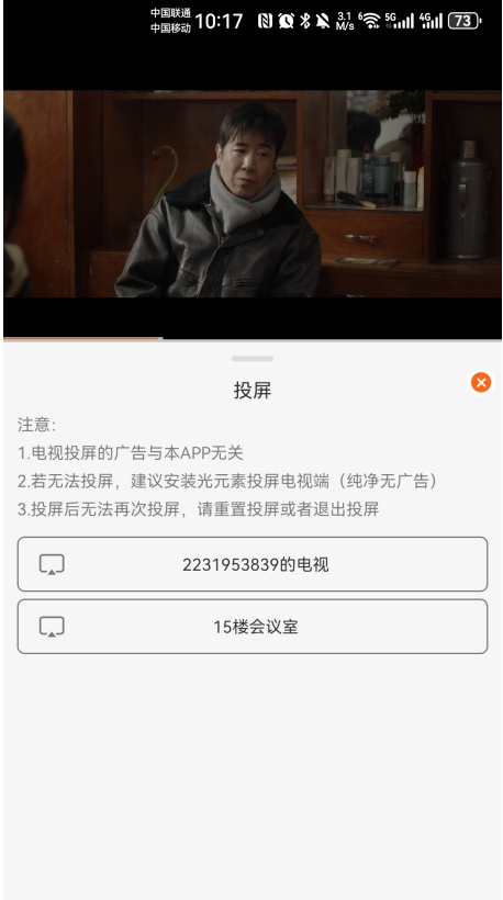 3.将我们的手机和电视处于同一个WiFi下,然后点击相对应的投屏设备开始投屏即可。