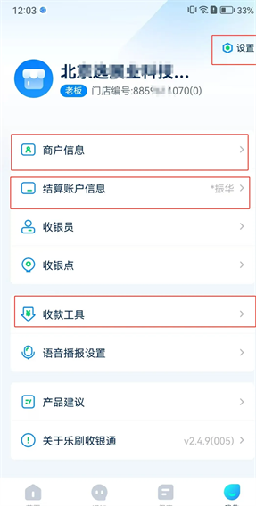 4、商户信息:可查询商户名称,商户号,刷卡费率和额度