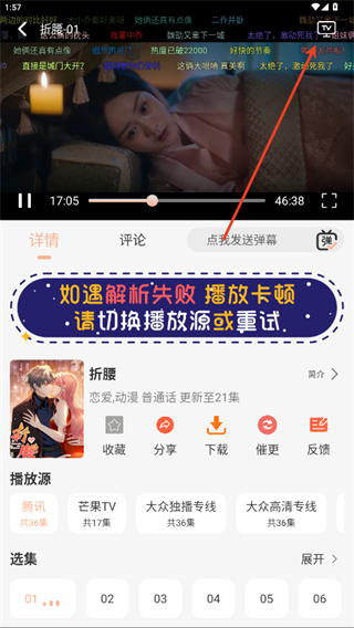 2.点击右上角TV投屏。