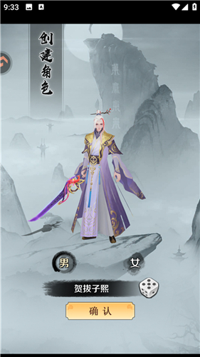 1、进入游戏选择角色以及性别,输入游戏名称点击确认