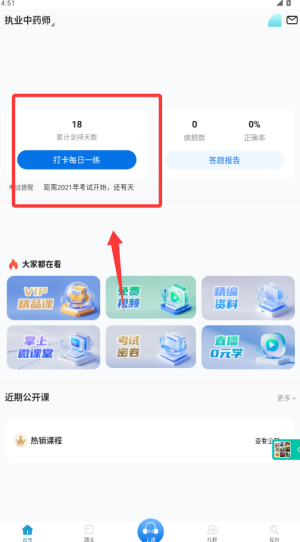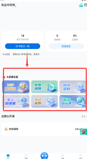 1、打开app完成注册,选择你正在备考的医学考试类别,系统会为你推荐对应的核心课程和学习路径。