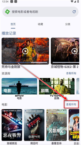 7.如下图所示就会看到有很多的资源,点击电影后面的查看所有。