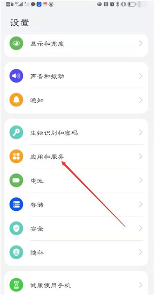 在手机上打开设置。点击【应用和服务】。
