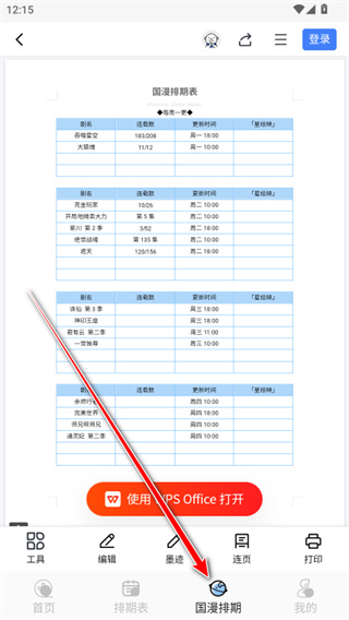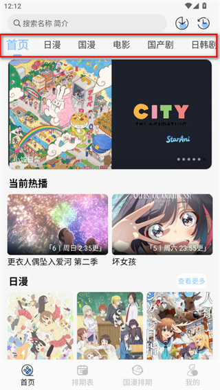 5.点击下方的国漫排期,即可看到最新的动漫排期表单