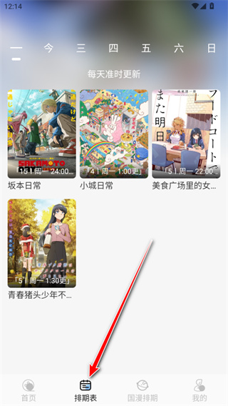 4.点击下方的排期表,就能看到每天准时更新的动漫资源