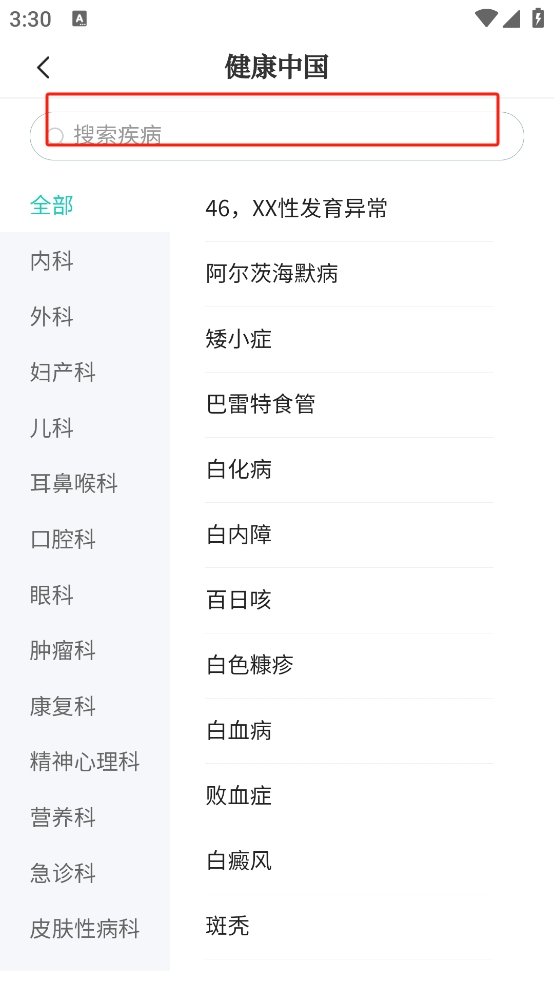 3、在这里,可以搜索疾病,了解相关知识;