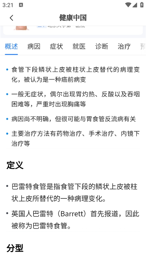 5、在这里可以看到我们可以看到这个疾病的相关症状,病因,如何治疗及日常管理等等。