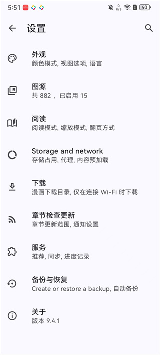4、在设置中设置外观、图源、阅读等更多个性化功能内容。