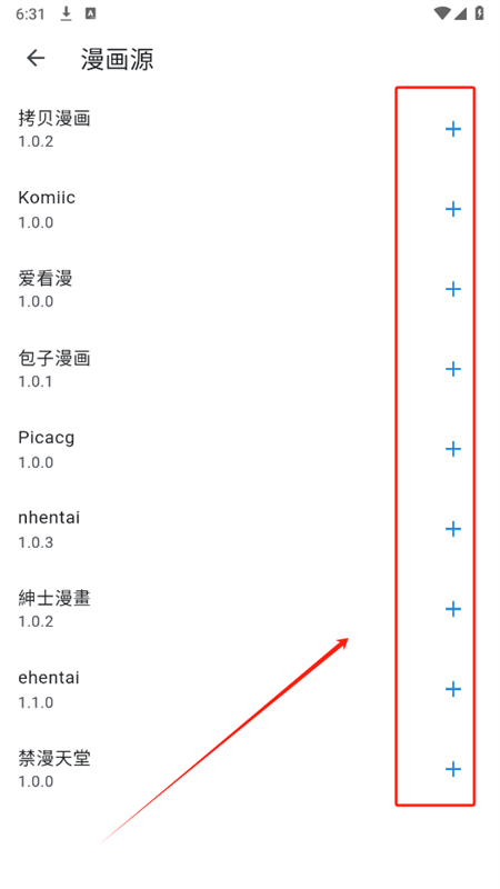 4、然后点击右侧的加号按钮,可以添加自己喜欢的漫画源
