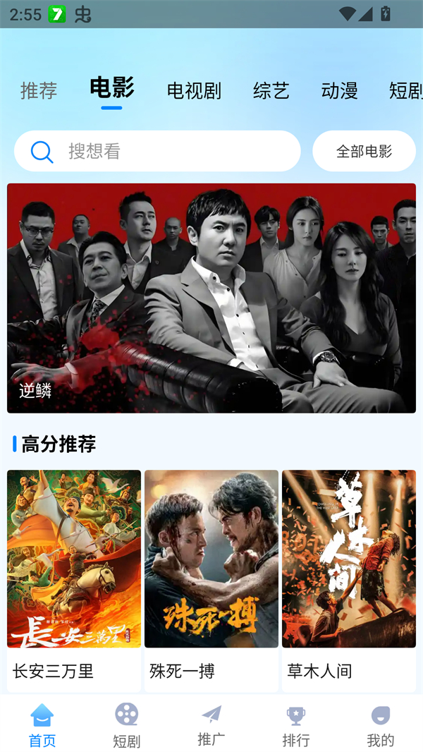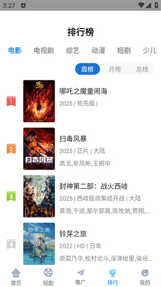 2、点击“排行”查看热门影视,或在搜索栏输入关键词查找特定内容。
