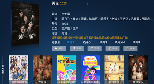 1、用户可以轻松浏览和选择影视资源,享受愉悦的使用体验。2、软件在使用过程中不会产生任何广告打扰,让用户可以专注于观看影视内容。