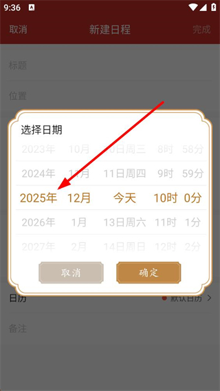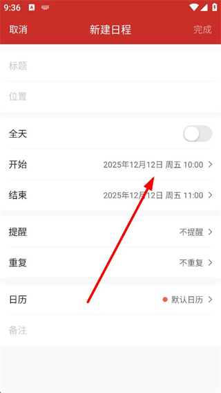 3、展开展示更多后,新建日程界面出现位置、全天开关、开始及结束时间等设置项,可根据需求调整日程的各项信息内容。