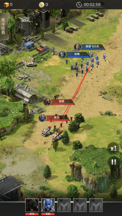 3、步兵、坦克、战机等兵种间存在明确克制链,合理搭配才能以弱胜强。