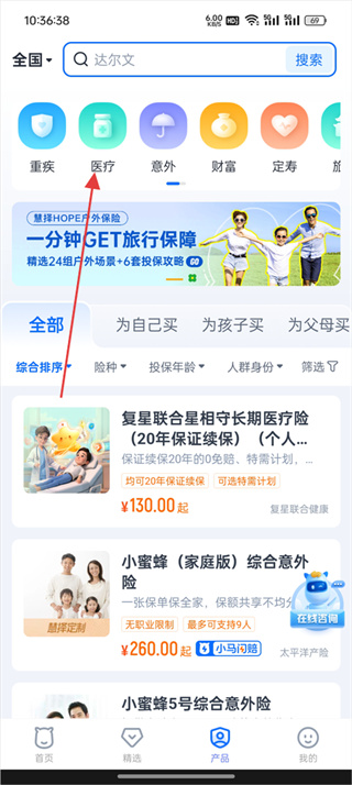 4、系统会根据填写的信息,智能推荐几款适合儿童的优质医疗险产品,你可以结合需求进行挑选;