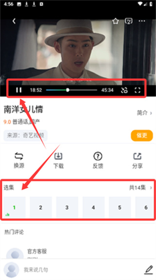 3、播放界面可使用进度条控制剧情节点,也可通过选集功能切换具体剧集。