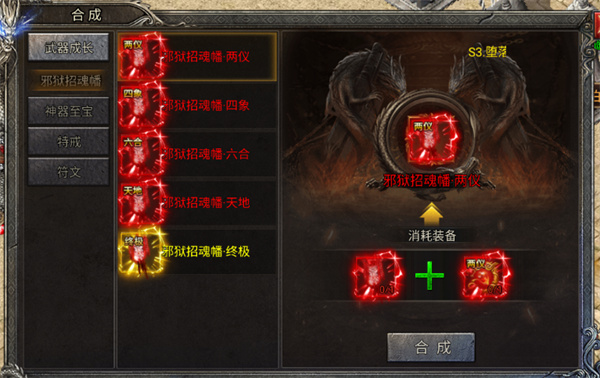 升级武魄和神器都需要用到传奇币,熔炼装备是获得传奇币的重要方式方式。前期熔炼装备与古宝-射日弓有冲突,此时不是很缺传奇币的玩家可以先不熔炼装备。在游戏后期传奇币较为紧缺,神器-武魂提升至20级后每提升5级可有传奇币礼包,也可以通过熔炼低品质或者多余的装备来获取更多的传奇币。
