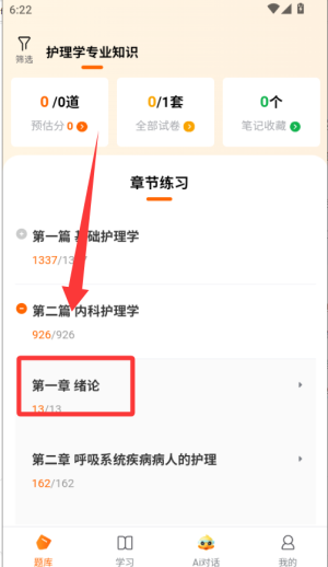 2、选择具体课程后,可以先学习章节知识点,然后进入对应的专项题库开始做题练习。