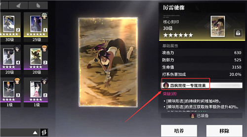 输出类角色的专属装备,能够大幅度加强技能效果,例如“厉雷驰骤”这一六星级的金色装备,能够加强角色“四枫院夜一”的技能效果,增强瞬哄形态时间,加强专属能力,在并未获取专属装备时,也可以直接搭配加强攻击倍率,和技能维持效果的下位装备。