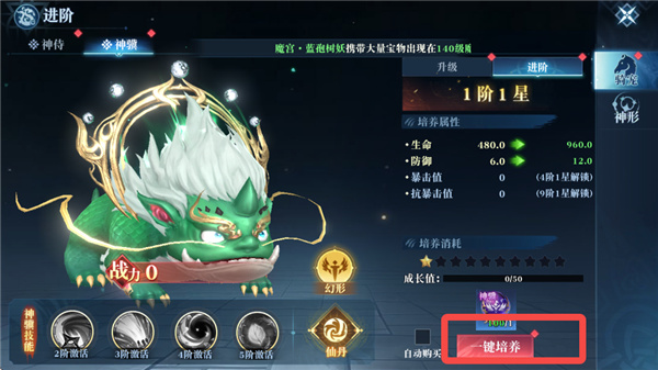 消耗神侍精华提升神侍的各属性值,还可激活其技能,提升战斗力。