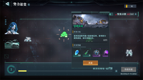 每日的势力悬赏务必完成,随着势力等级的提升,可以给玩家提供大量英雄经验与各类资源,每一次悬赏任务需要消耗一点情报点,最高可囤积六十点情报点。(不要超出哦)
