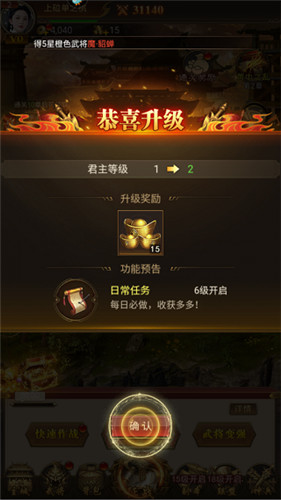 1、可同时上阵5个武将,外加1个援军武将(君主90级开启援军系统)。