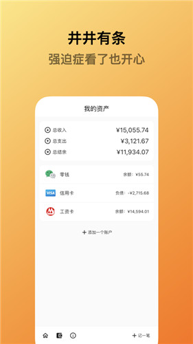 3、可支持关联账户与投资,清晰呈现净资产与收益波动,总览财富全景。