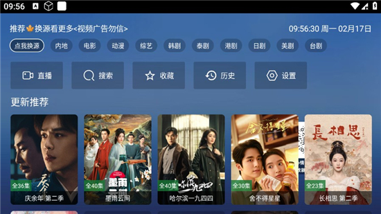 TAO影视是一款无广告观影软件。它支持4K超清画质,还能根据网络情况自动切换清晰度,从720P到4K随便选,看片流畅不卡顿,手机直接连电视投屏也超简单,客厅立马变私人影院。界面设计超清爽,左边菜单里搜索、收藏、历史记录三大功能一目了然,右边主屏会动态推荐热播剧,找片超方便。