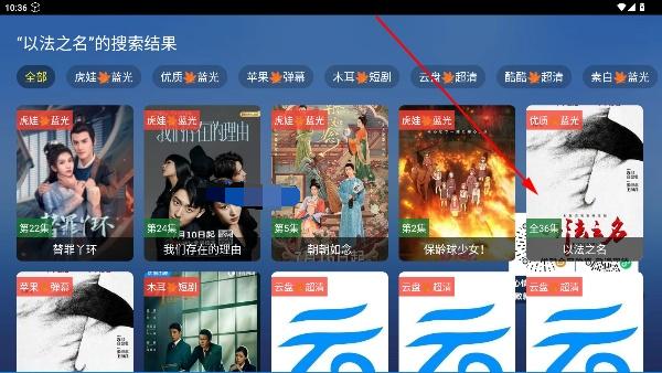 3、最后,从下方显示的搜索结果中,选择您要观看的影视剧并点击进入播放页面。