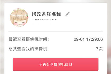5、在家人管理页面,可以修改家人的备注名,也可以选择不再分享摄像机给他。而被你邀请的家人和朋友只能查看和使用相关功能,没有管理员权限。