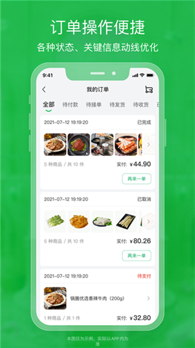 1、市场热门新品、行业网红食材及季节限定商品会快速完成上架流程,助力商户及时更新菜单吸引顾客。2、线上所有交易流水自动记录并分类汇总,一键生成清晰对账单方便财务核对显著减轻对账压力。