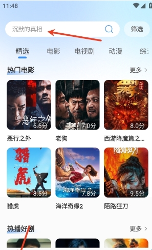 1、用户们可以直接在主要搜索栏搜索自己喜欢影视资源名称