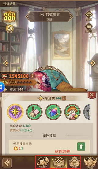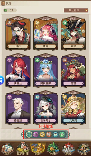 2、根据游玩的经验,建议各位转生者大人在平均保证伙伴有200级的情况下,集中培养自己喜欢的伙伴。本游戏中伙伴有5个相性,分别是:勤奋、自由、挑战、欢愉、渊博。