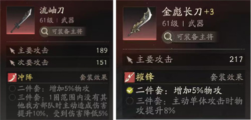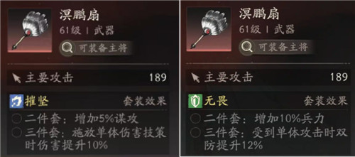 从随机到的装备和词条来看,套装词条是随机给到各个装备的,不过策士&治疗辅助能带的装备,会以提升谋攻、生存的词条为主,比如摧坚、无畏等词条;步、枪、骑等物理攻击为主的武器装备,会以提升物攻、输出的红色词条为主,比如摧锋、冲阵等。