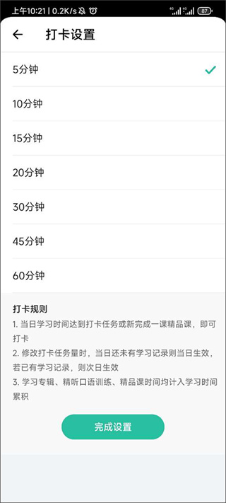4、在这我们就可以自由设置打卡时长了,大家要根据自己的学习安排认真设置好自己的打卡时长哦。