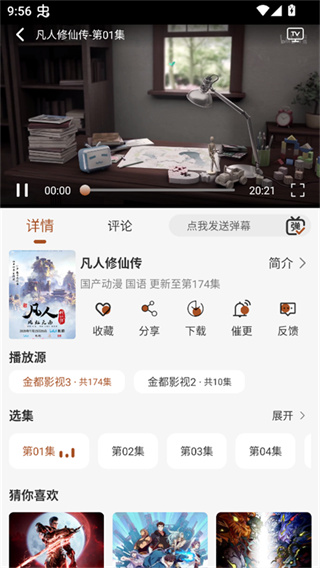 4、点击便可以进入播放了,还拥有换源、下载、投屏、发弹幕等一系列功能。