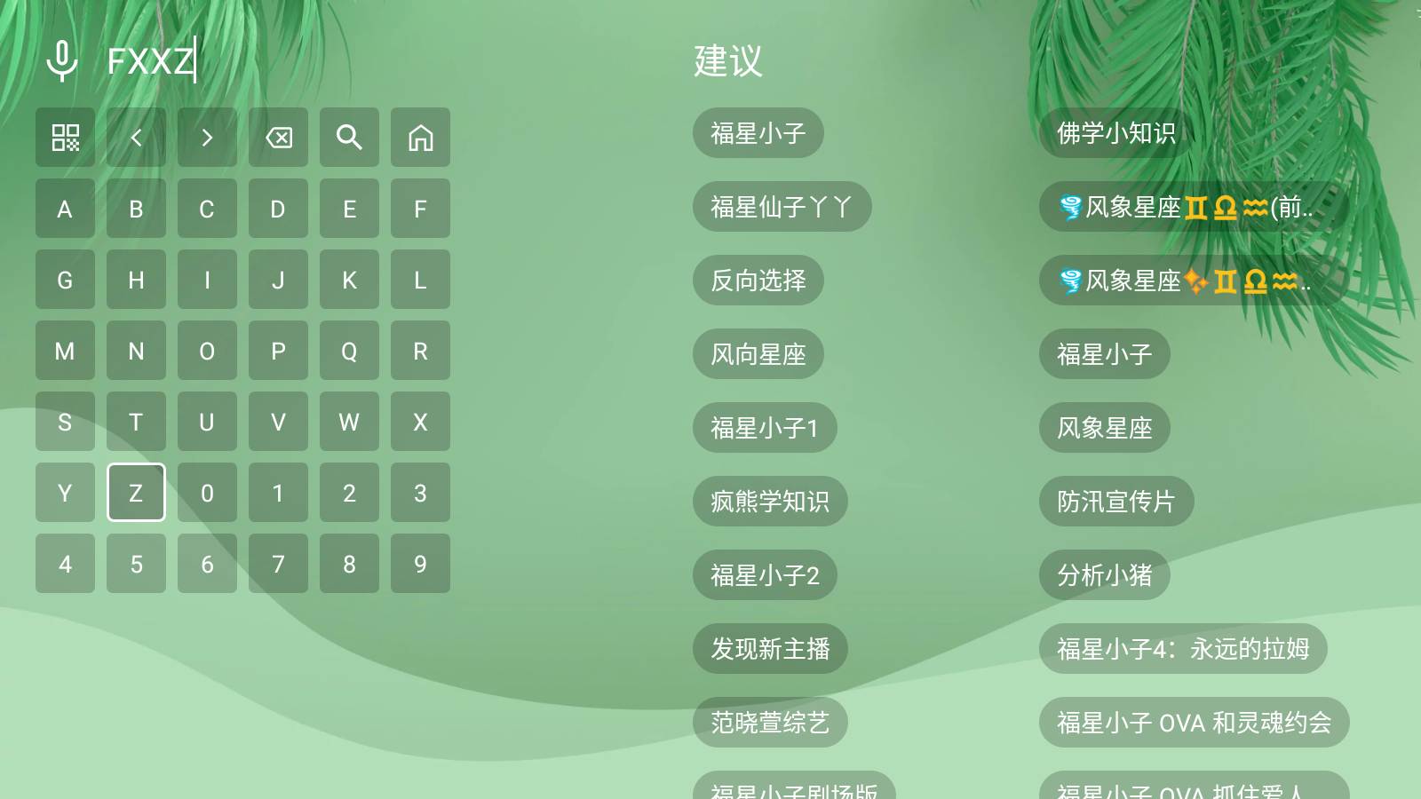 2.在左侧输入影视剧名的首字母。