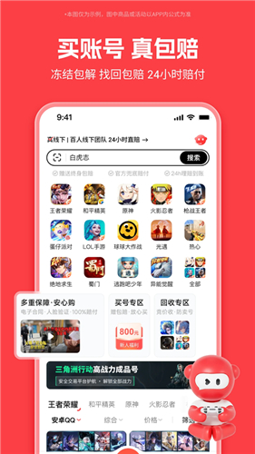 1、深耕行业数十年,账号找回永久包赔,每笔交易全程保障,让你买号卖号无后顾之忧。2、覆盖海量热门手游,王者、原神等应有尽有,上百万优质账号任选,满足不同玩家需求。