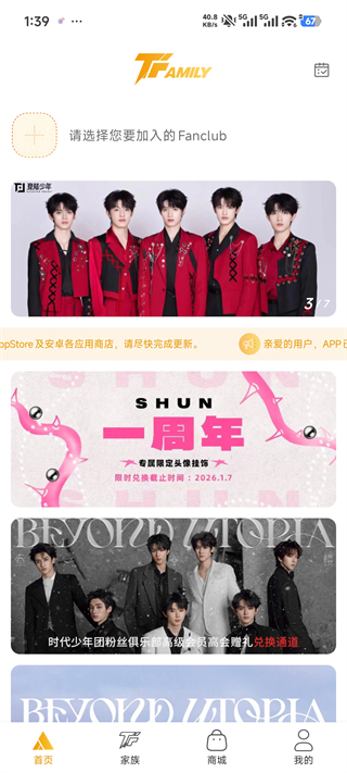 1、打开APP,进入“家族”页面(或找到“请选择您要加入的Fanclub”入口);