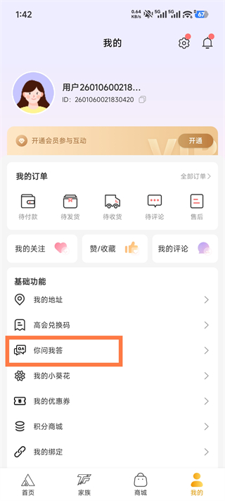 1、进入“我的”页面,找到并点击“你问我答”选项;