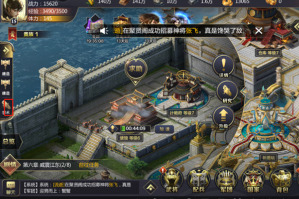 招募强力武将后,可以挑战神龙塔获得装备,通过梦中三国获取经验。完成任务和副本会提升等级和战斗力。升主城、建筑、并提升科技,增加收益和招兵能力。