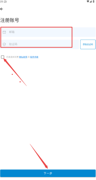 4、输入邮箱和验证码,点击下一步,然后设置密码,就能注册成功并登录了。