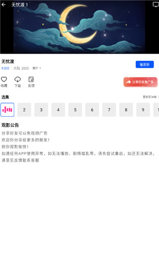 1、全程无插播广告,VIP内容也能免费观看,追剧更畅快。2、支持多种清晰度选择,加载速度快,观影不卡顿。