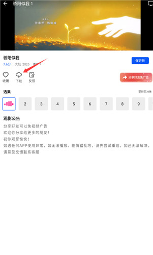 2、点击播放就可以进入观影页面,点击下载选项
