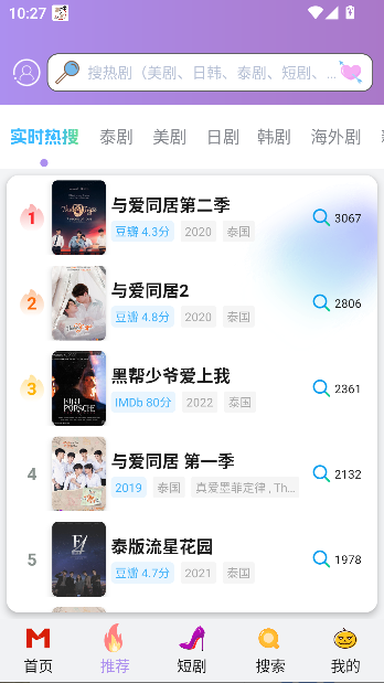 泰剧tv官方版是一款专门看泰剧的影视软件。想找剧时,直接输入剧名、演员名字或任何相关关键词,系统就能快速帮你定位到想看的剧集,不用在海量资源里翻找。播放时采用高清流畅技术,画面清晰不模糊,加载速度快,很少出现卡顿情况。