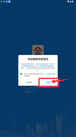 1、打开应用后勾选同意服务协议,点击确认按钮。