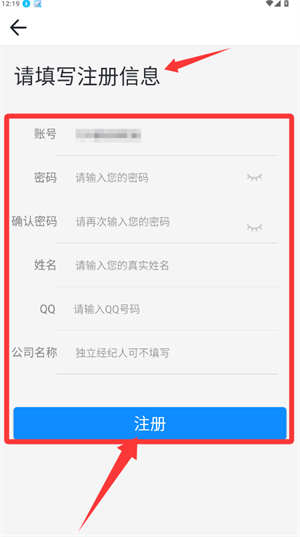2、在注册页填写手机号,获取并输入验证码信息。